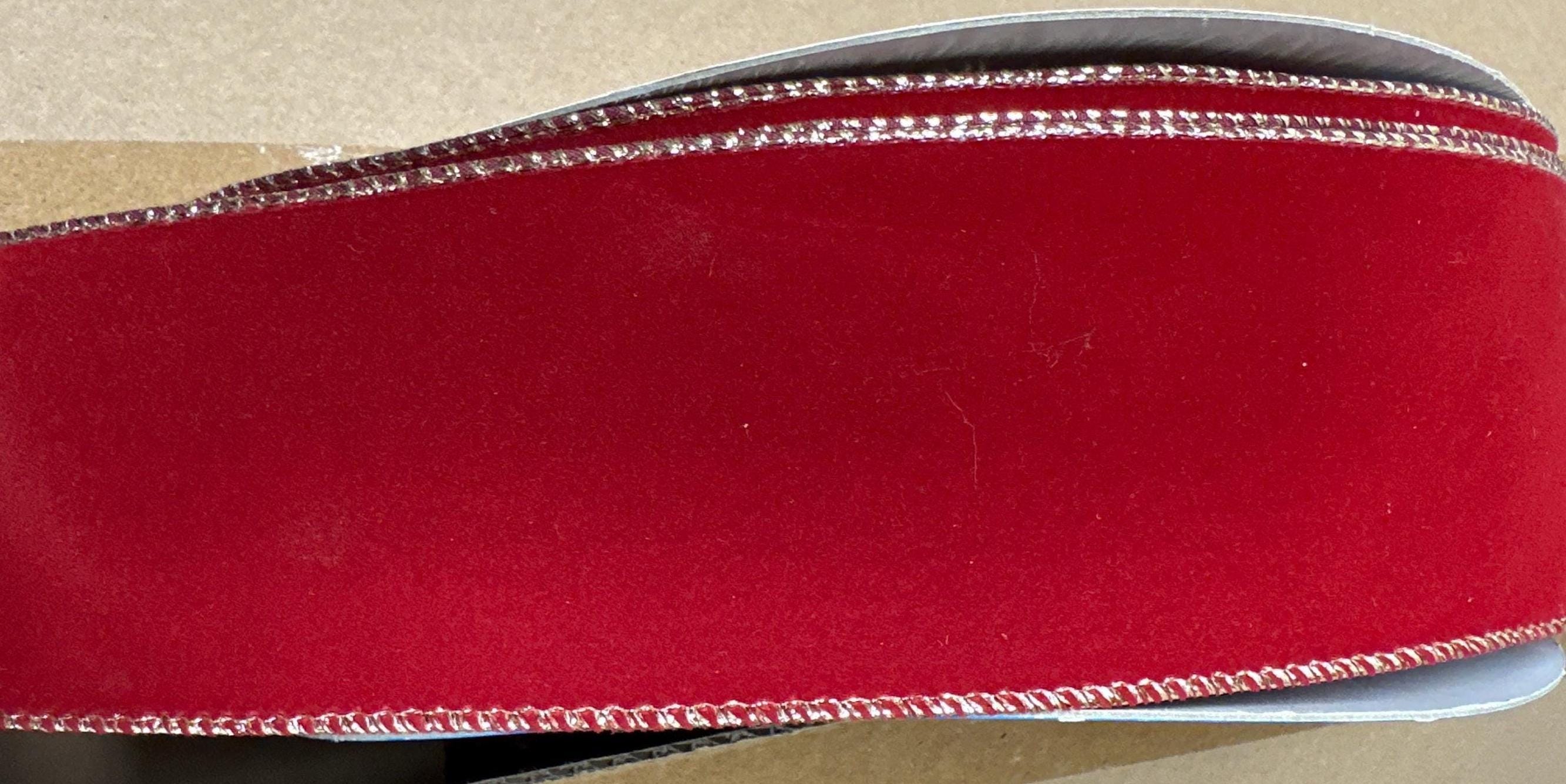 Small bow is pictured with red satin bow photo. It is 9-10 inches wide X14 inches total length (with 10 inch tails).
