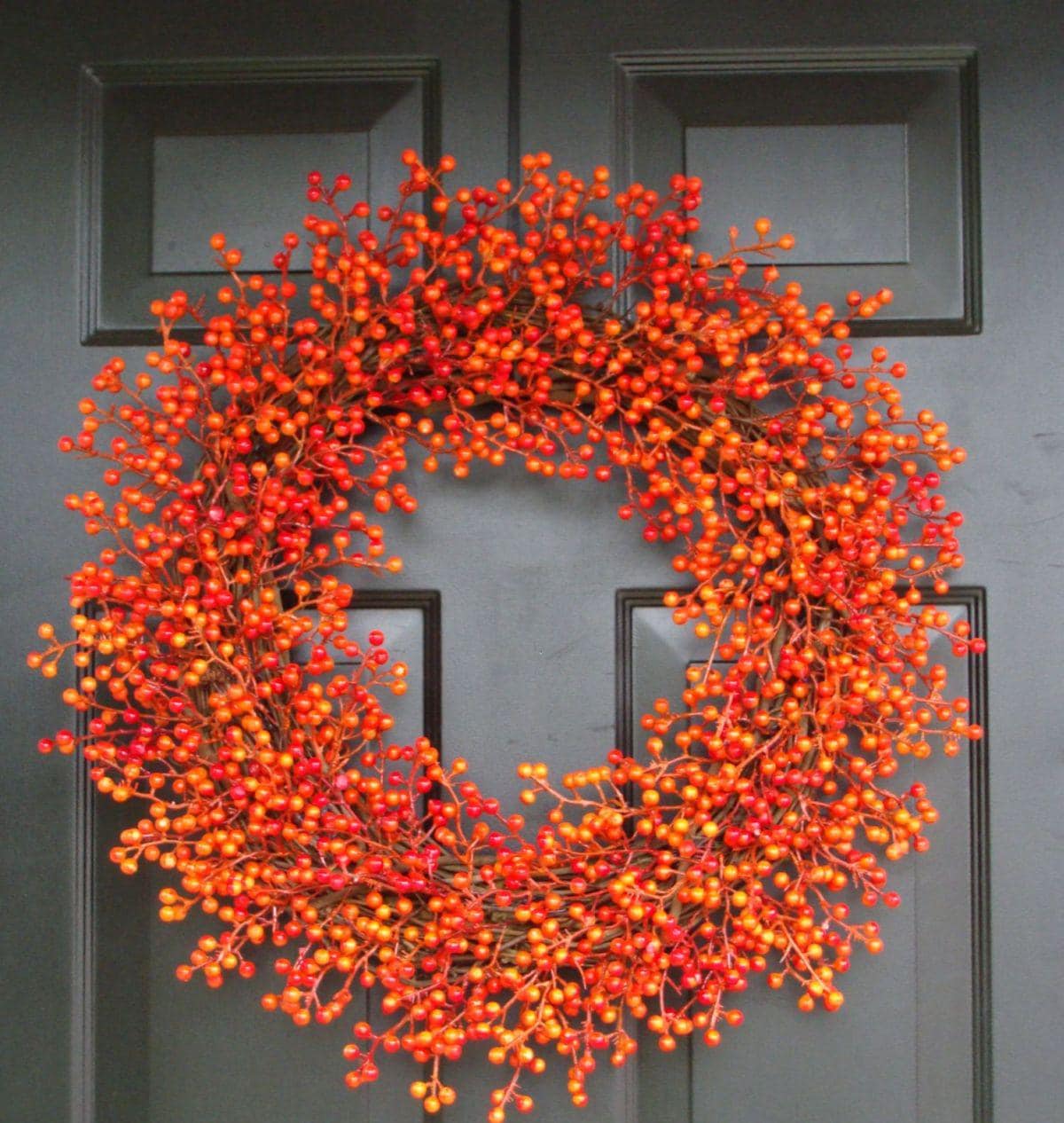 Another original design from Elegant Holidays! Mini Waterproof WEATHERPROOF artificial berries are used to create this bright orange berry wreath. Unlike other orange pip berry wreaths, this material can get wet, be exposed to the elements and last for years! These wreaths are filled with thousands of berries.