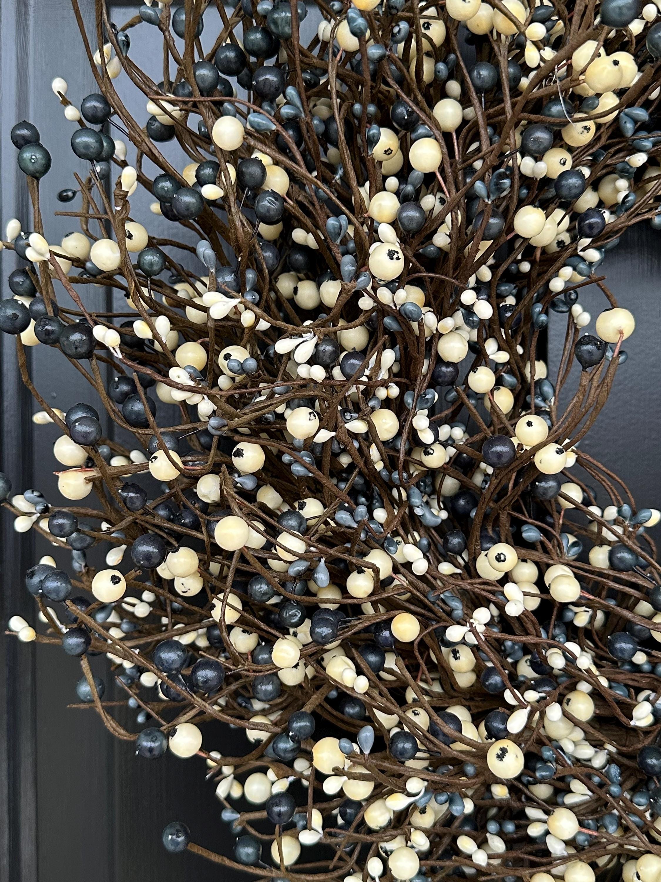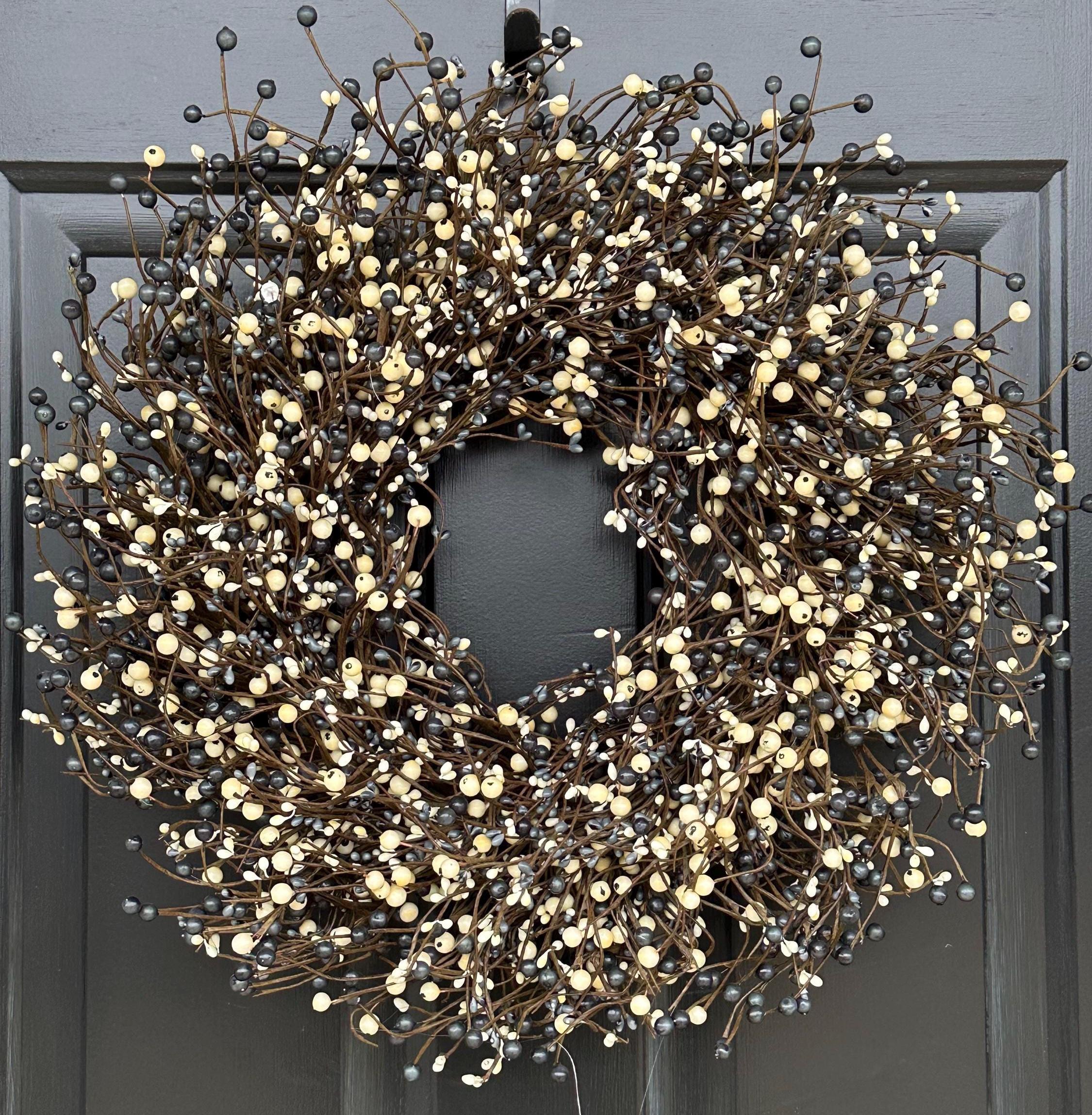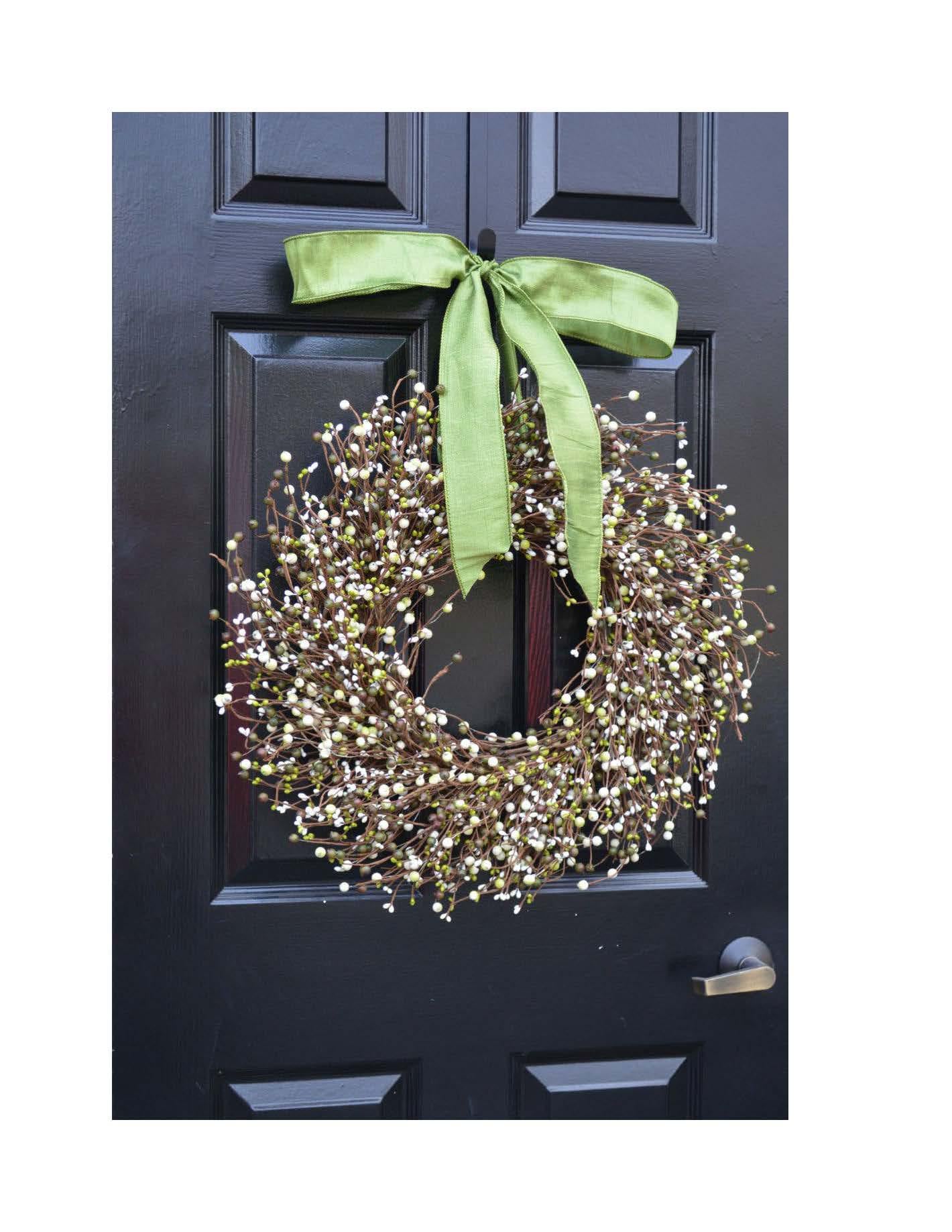 Choose a berry wreath in the color, size, and with additional options such as bow and/or monogram. This wreath may be able to fit in between a storm door. Available in sizes 18-24 inches in diameter. 4 inches deep but I can make some sizes 3 inches deep. Message me for more information.