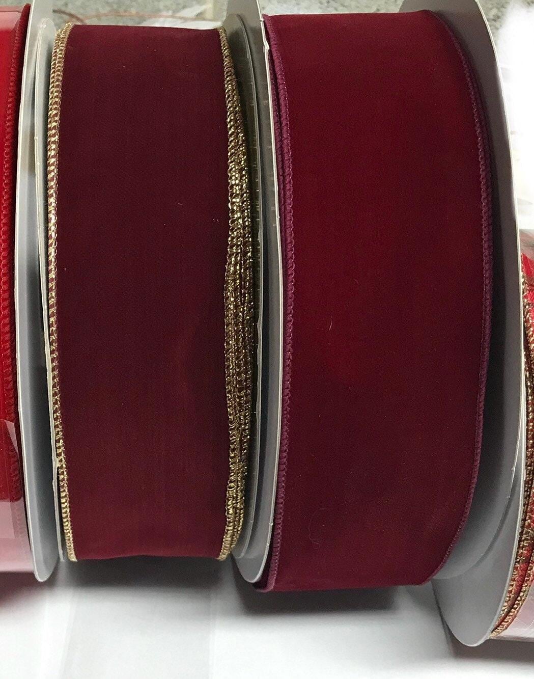 This listing is for RIBBON BY THE YARD (not premade bows), available in 10, 25 or 50 continuous yards of weatherproof 2 1/2 inch wired Christmas ribbon. Ribbon is reusable and durable. Your choice of Red Velvet, Red velvet with gold trim, burgundy velvet with gold trim, red satin, Christmas plaid with gold trim. Choose option before adding it to your cart.
