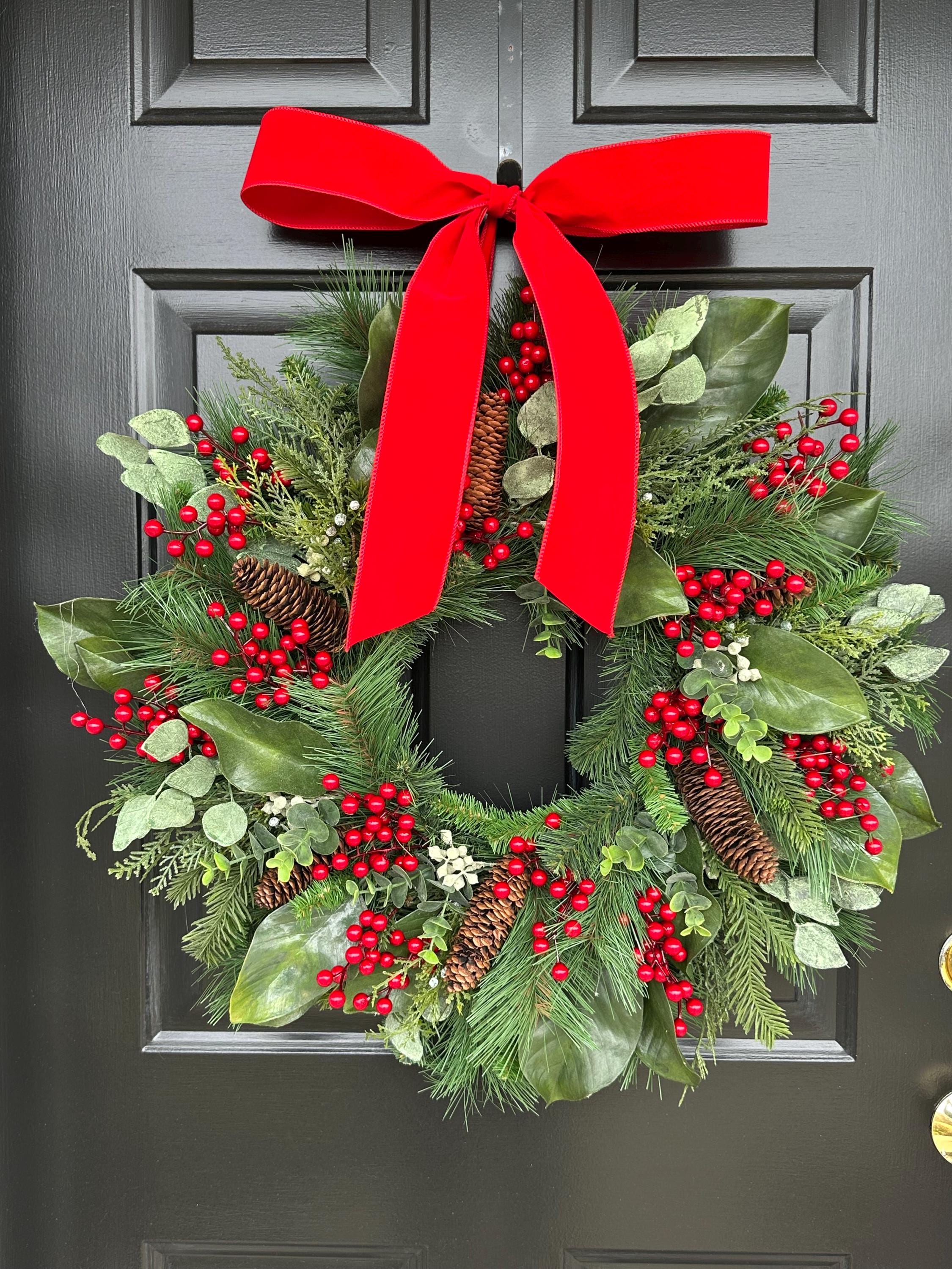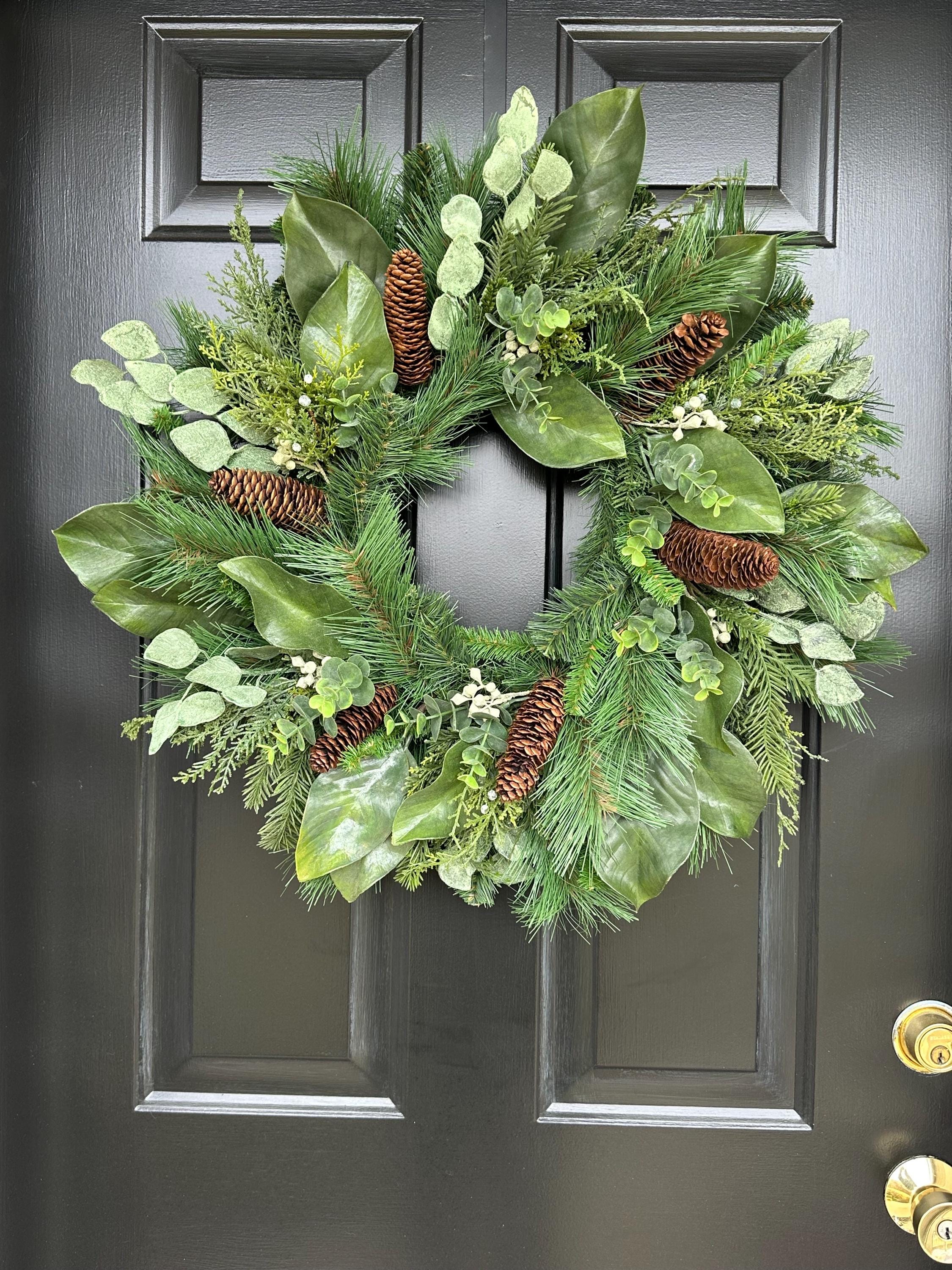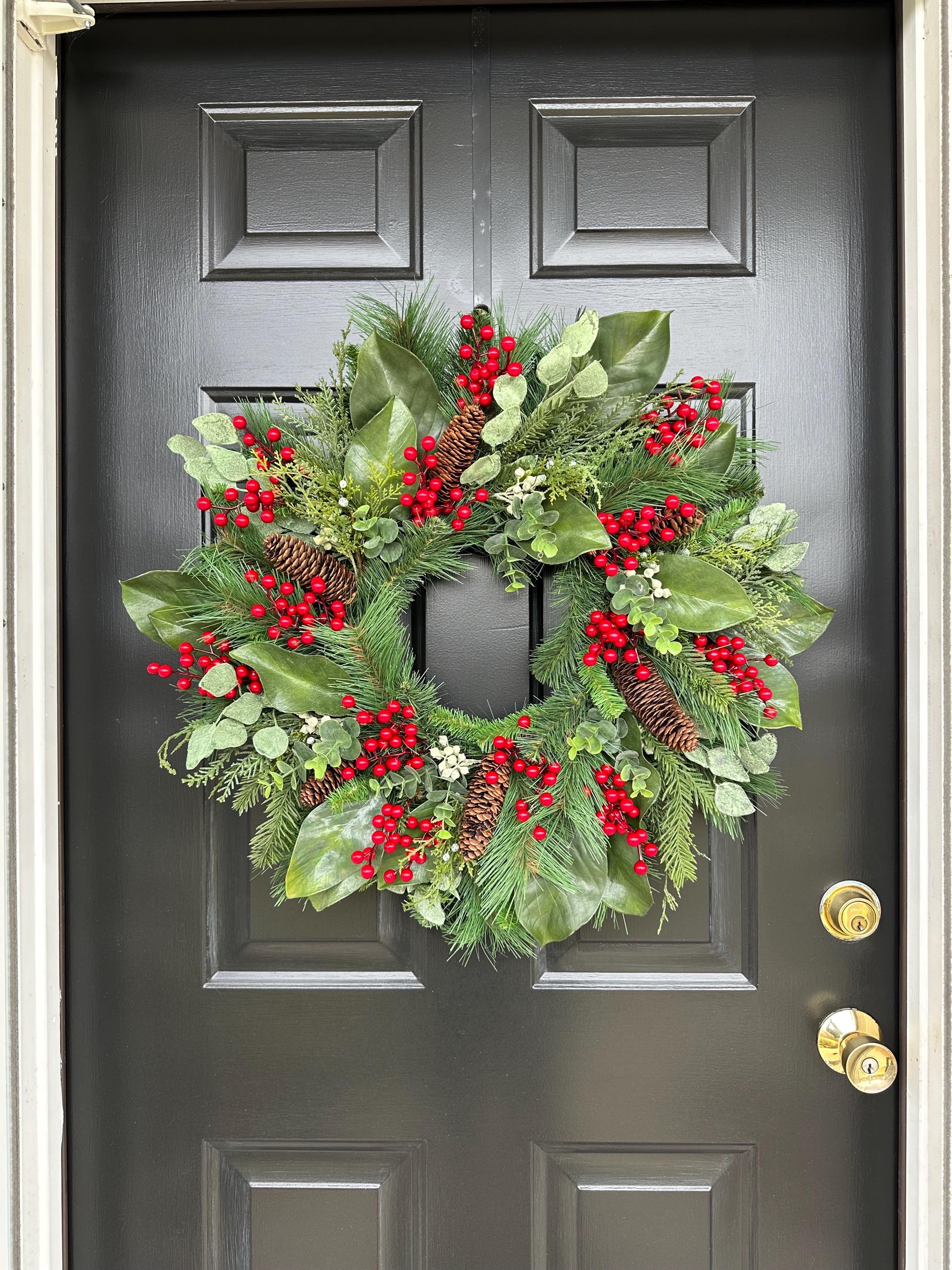 READY To SHIP FREE SHIPPING ($40-$45 value) 28 Inch Berry Pine Cone, Magnolia leaves, Eucalyptus Pine Christmas Wreath Outdoor Wreath Last One