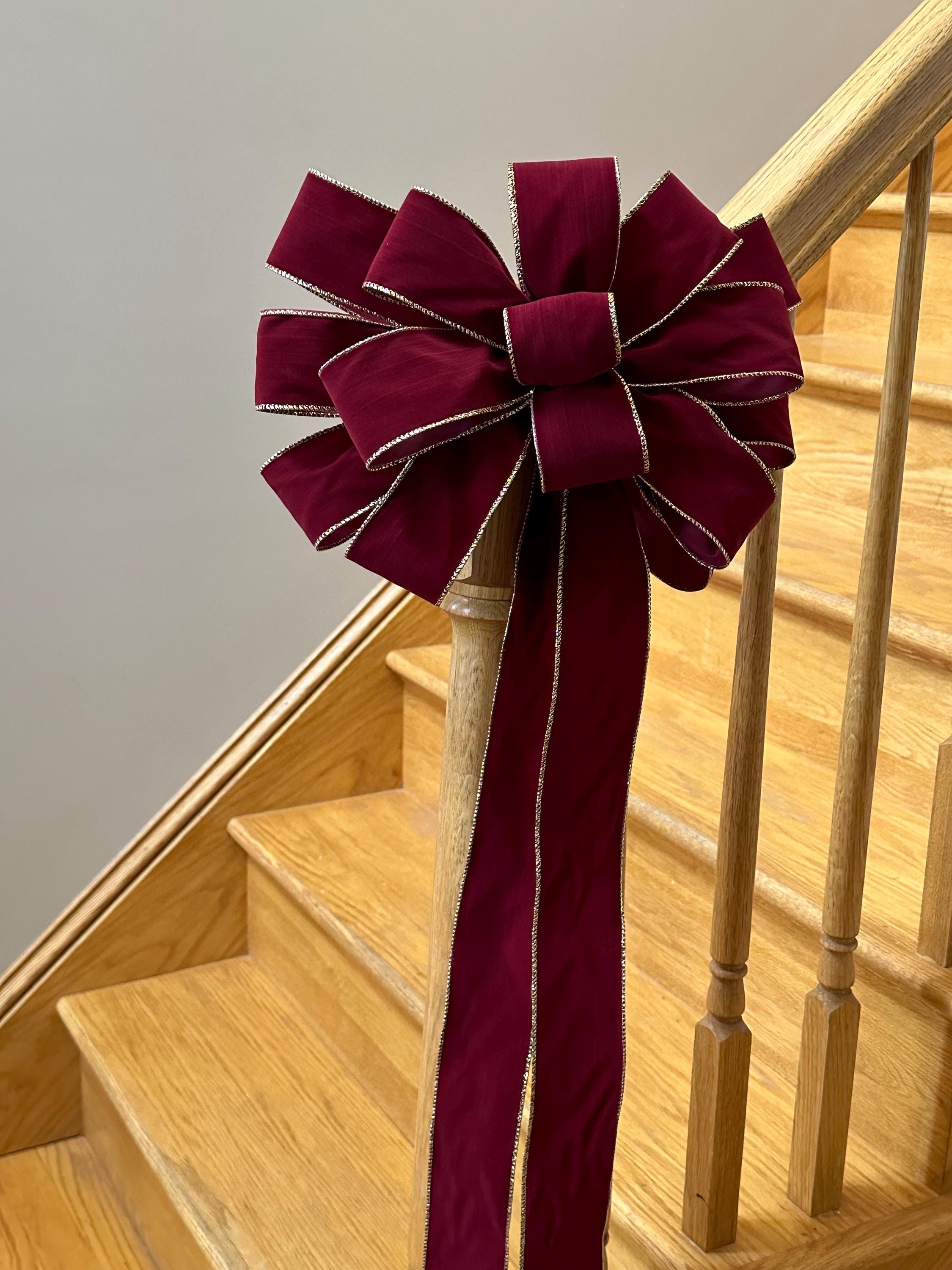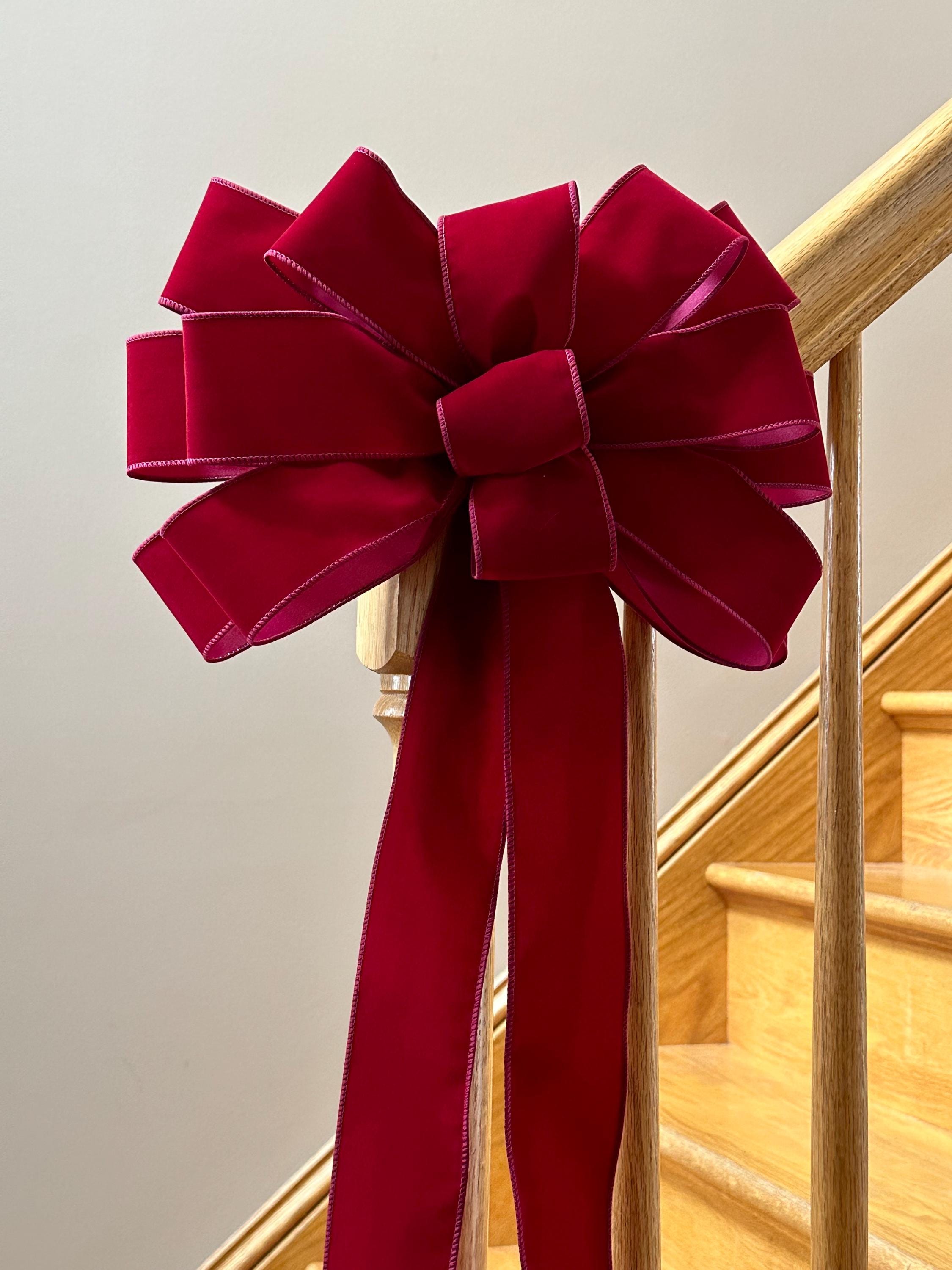 This listing is for RIBBON BY THE YARD (not premade bows), available in 10, 25 or 50 continuous yards of weatherproof 2 1/2 inch wired Christmas ribbon. Your choice of Red Velvet, Red velvet with gold trim, burgundy velvet with gold trim, red satin, Christmas plaid with gold trim. Choose option before adding it to your cart.